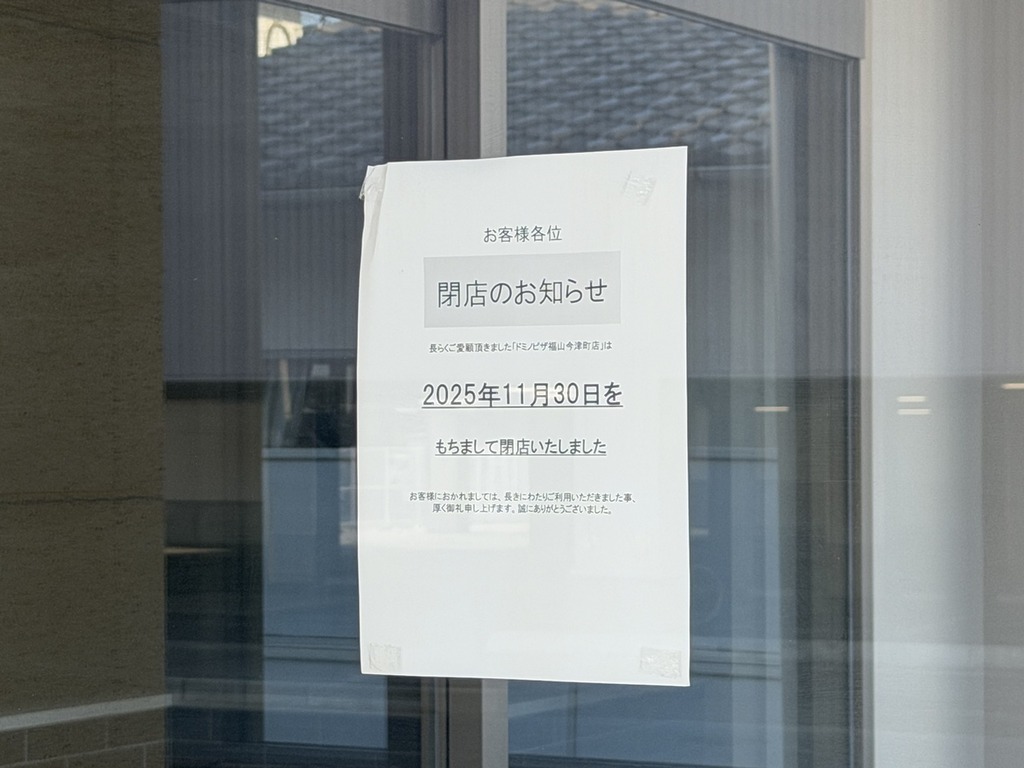 こちらを拝見すると、2025年11月30日に閉店されたのかと思うのですが、よく見ると店名に『福山今津店』とありますね^^;