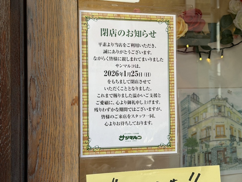 サンマルコさんは、2026年1月25日(日)をもって閉店されます。