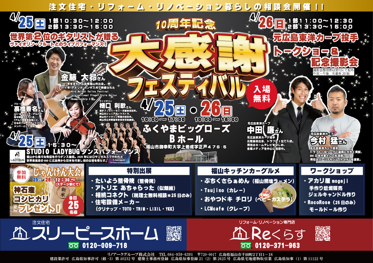 10周年記念大感謝フェスティバル4/25(土)・26(日)開催します(スリーピースホームHPへ)